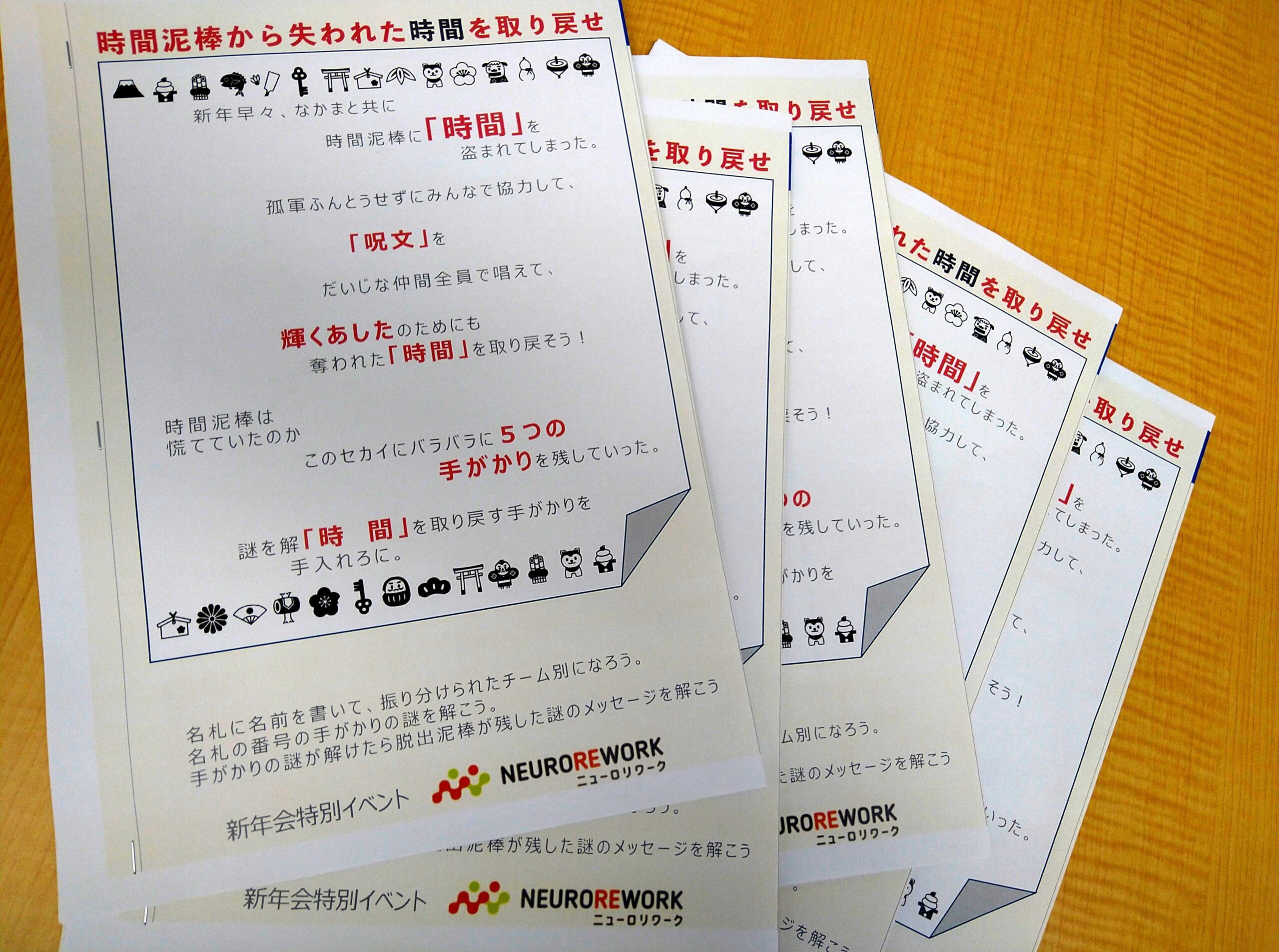 午後には新年会を実施。今年はなんとニューロリワーク三軒茶屋センターの利用者さん作成(!)の謎解き脱出イベントを開催いたしました。