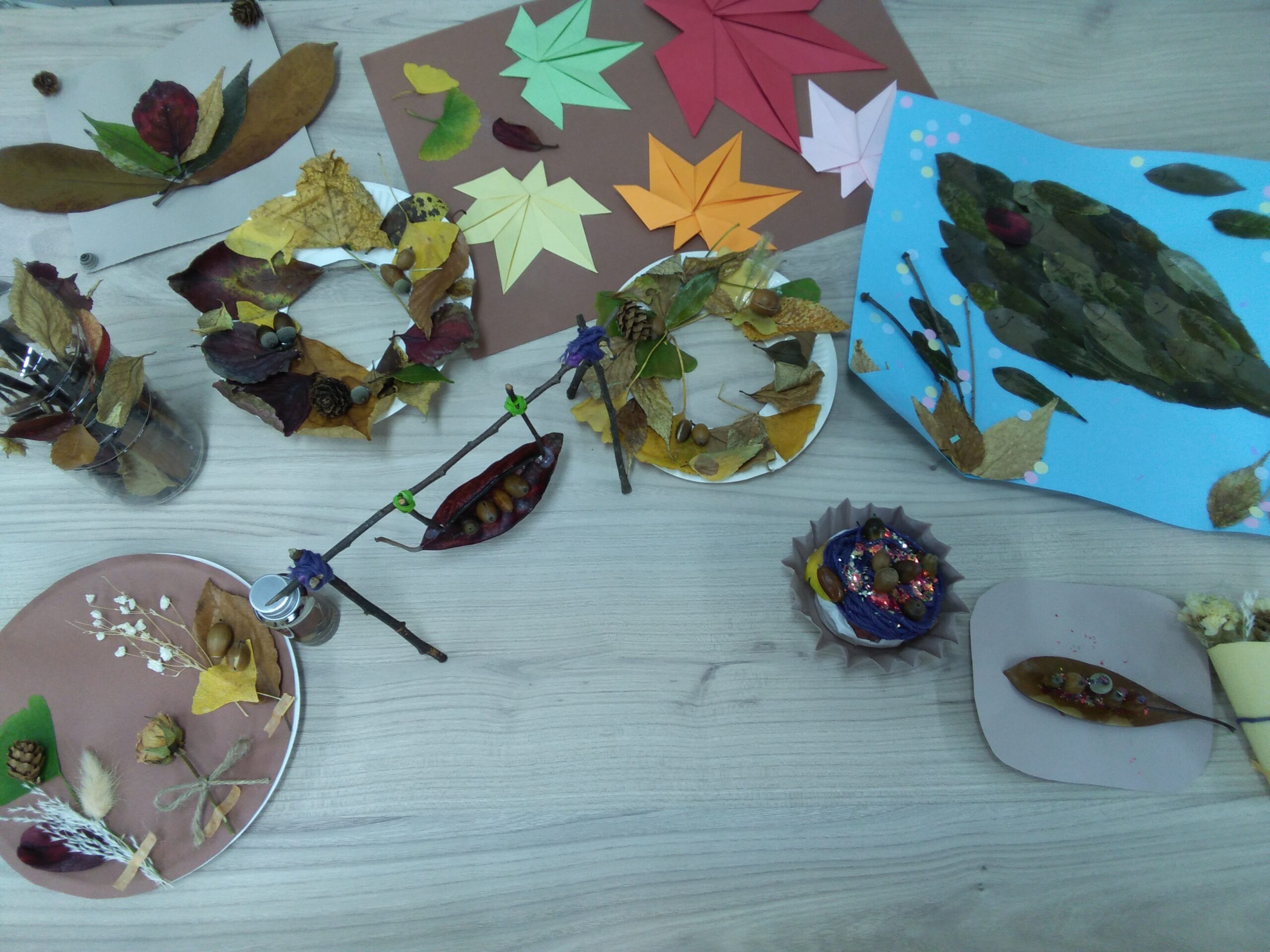一つひとつの落ち葉を眺めながら、感じるままに平面や立体的な作品に仕上げ、中には動きのある個性的な作品で秋を表現していました🍂